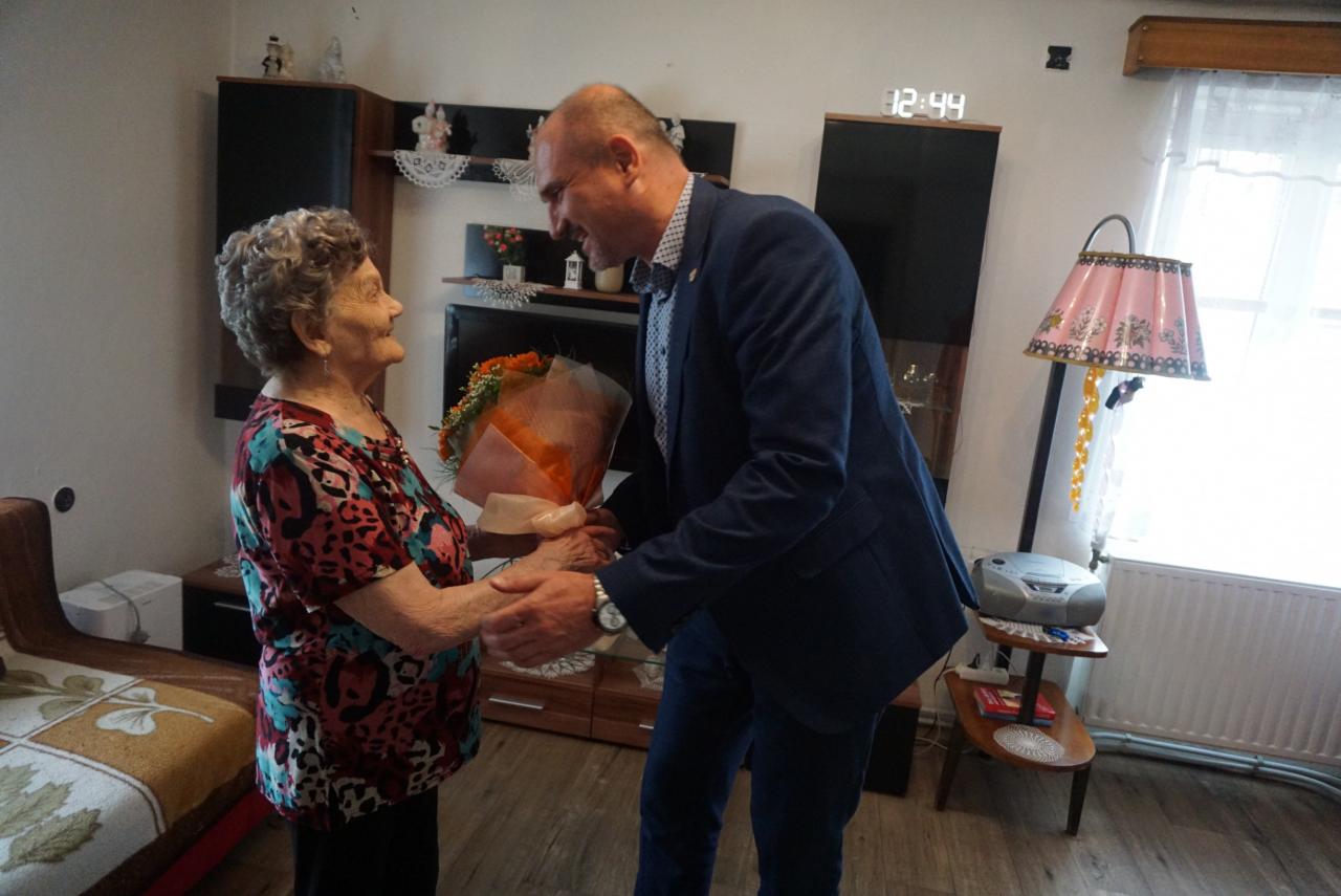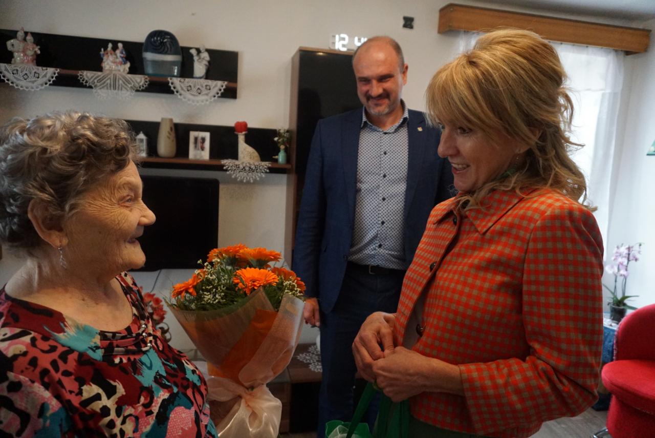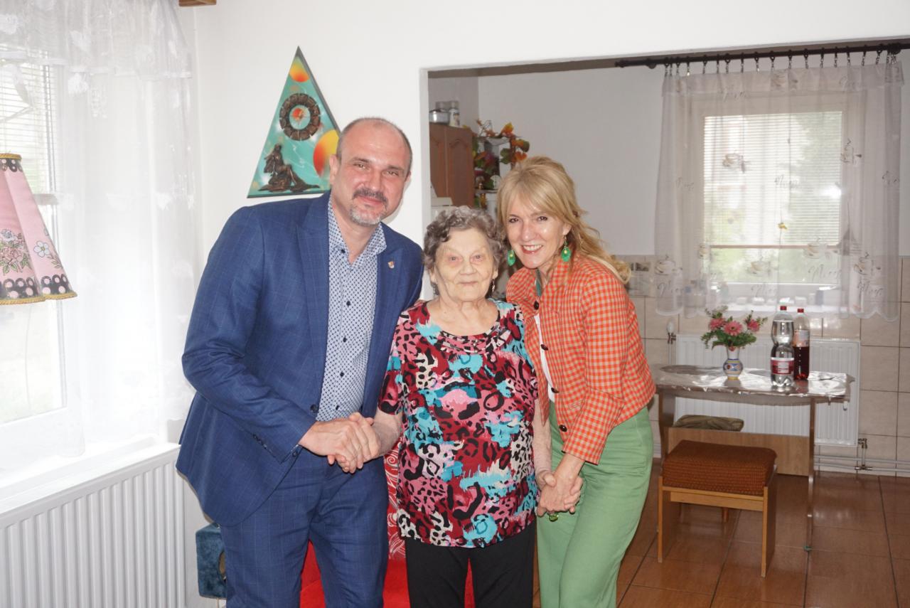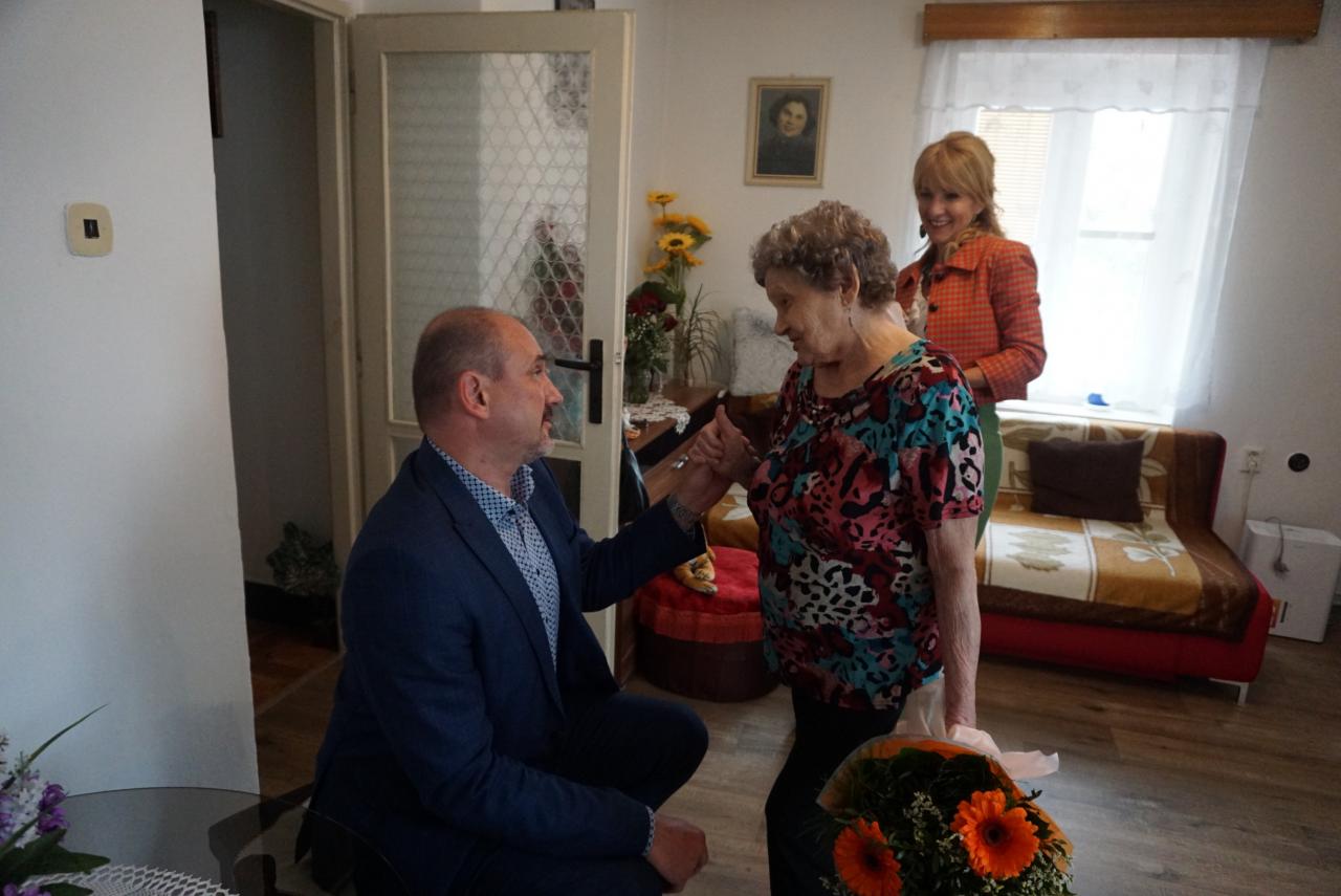 Primátor mesta Karol Pataky navštívil pri príležitosti 90. narodenín pani Rozáliu Adamčovú, obyvateľku nášho mesta. Oslávenkyňa sa narodila pred 90.rokmi, presne 13. júna 1933 v rodine Csíkových. Po ukončení štúdia pracovala na pošte v Kráľovskom Chlmci, odkiaľ odišla v roku 1983 do dôchodku. S manželom, ktorý zomrel pre 20. rokmi, vychovali 6 detí – 3 chlapcov a 3 dievčatá. Deti ich obdarili 9 vnúčatami a 14 pravnúčatami. Pani Rozália veľa cestovala, navštívila Egypt, Chorvátsko a Izrael. Na dôchodku ostala aktívna, v minulosti veľa plietla, šila, momentálne veľa číta, lúšti krížovky, prípadne záhradníči. Teta Rozália žije spoločne so svojou dcérou, ktorá jej pomáha po všetkých stránkach. Rada sleduje televíziu, má rada seriály a hlavne na Slovenskej televízii reláciu Nová záhrada, kde je hlavným aktérom jej vnuk Martin Čurda, na ktorého je právom hrdá. Prajeme všetko najlepšie!