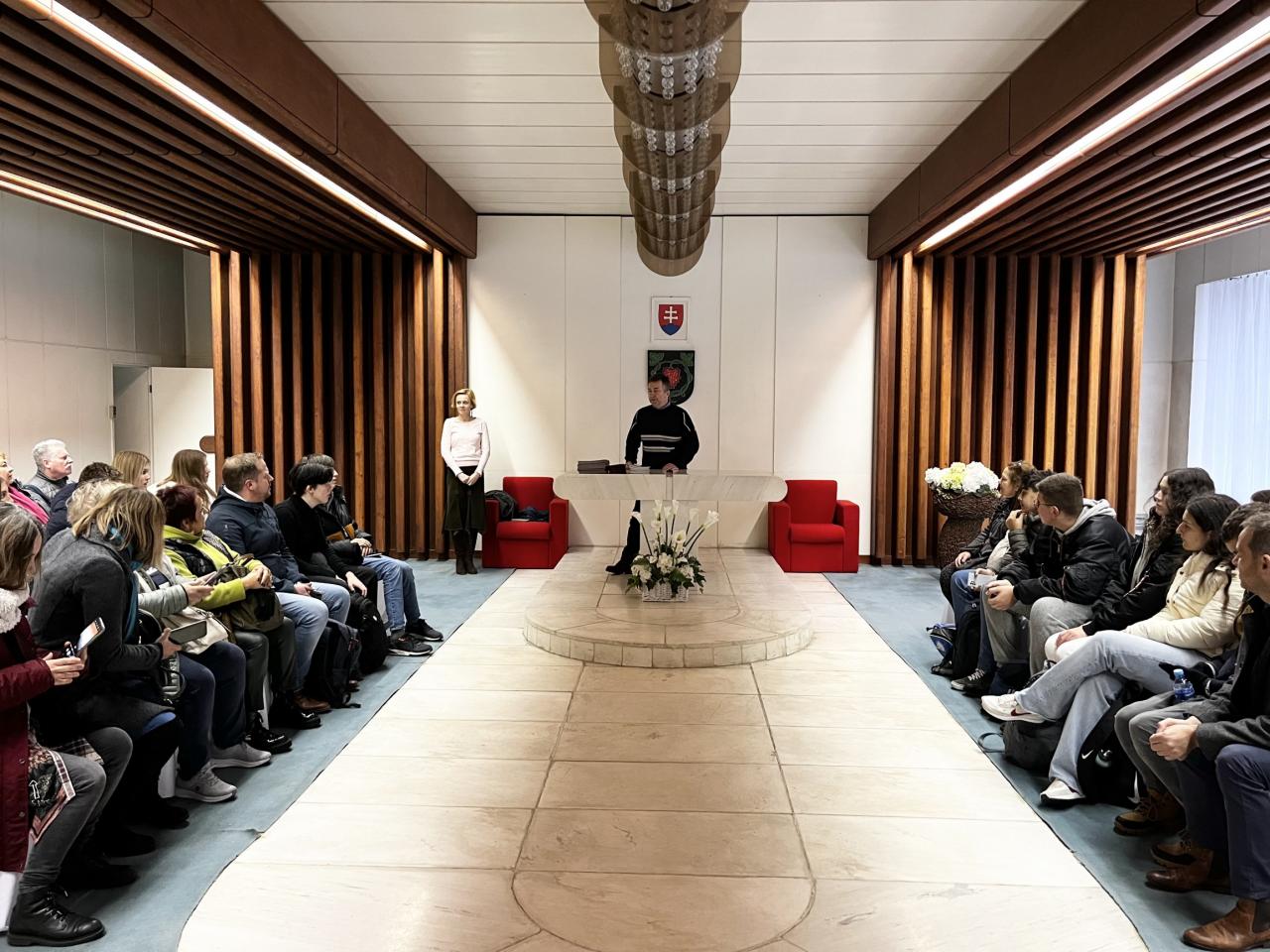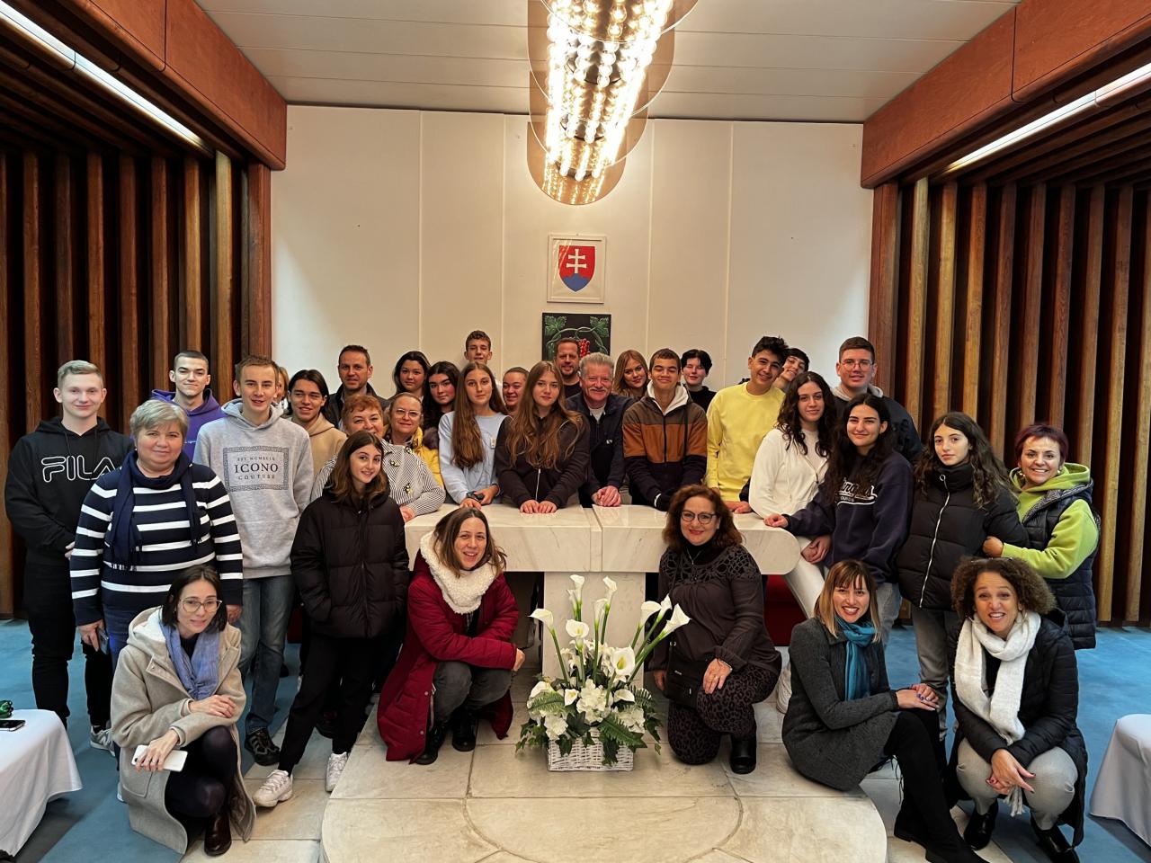 A Királyhelmeci Gimnázium is évről évre bekapcsolódik az Erasmus+ nemzetközi diákcsereprogramba. A modern kor egyik legnagyszerűbb vívmánya, hogy a fiatal generáció tagjai az iskolapadokat pár nap erejéig utazásra és személyes tapasztalatszerzésre cserélik. Világot látnak, közben rengeteget tanulhatnak az egyes országokról, nemzetekről és új barátságokra is szert tehetnek. Az Erasmus + LEAVES projekt célja, hogy erősítse a tudatos környezetvédelem oktatását, kiemelje a sport és az egészséges életmód fontosságát. A rengeteg program mellett sikerült a ciprusi, macedón, lengyel, német és portugál diákoknak és tanáraiknak ellátogatni hozzánk, a Királyhelmeci Városi Hivatalba is. Mivel a város polgármestere, Pataky Károly egyéb kötelességei okán nem tartózkodott a telepulésen, Dr. Balogh Csaba hivatalvezető úr angol nyelven mesélt Királyhelmec történelméről, szimbólumainkról, a város környezetvédelem terén elért sikereiről és a terveinkről vendégeinknek.